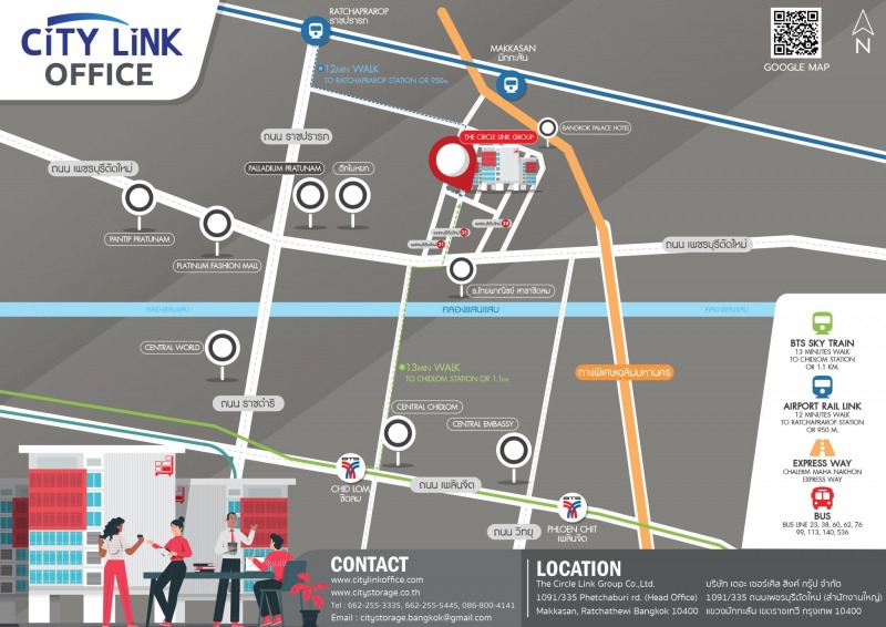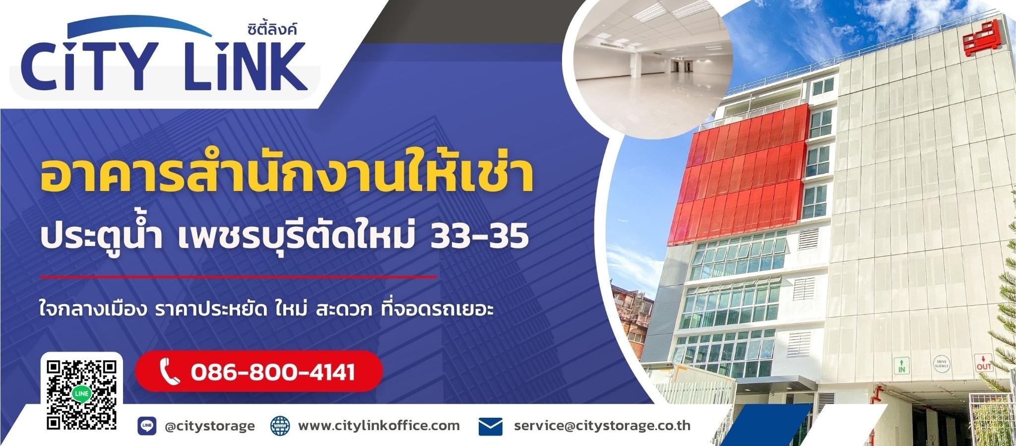 ซิตี้ลิงค์ อาคาร A และ B ออฟฟิศรีโนเวทใหม่ เป็นอาคาร “City Link Office” สำนักงานให้เช่าและ “City Storage”เป็นพื้นที่เก็บของ เก็บสินค้า ย่านประตูน้ำ เพชรบุรีตัดใหม่ มักกะสัน ราชเทวี ค่าเช่าถูก อาคารสวยตั้งอยู่ในทำเลที่ตั้งดีมาก พื้นที่เปล่าเช่าเป็นออฟฟิศ เช่าเป็นที่เก็บสินค้า มีหลากหลายขนาด มีตั้งแต่พื้นที่เช่าขนาด 32 ตารางเมตรถึงพื้นขนาด 100 ตารางเมตรขึ้นไป ราคาเริ่มต้น 280 บาท/ตารางเมตร